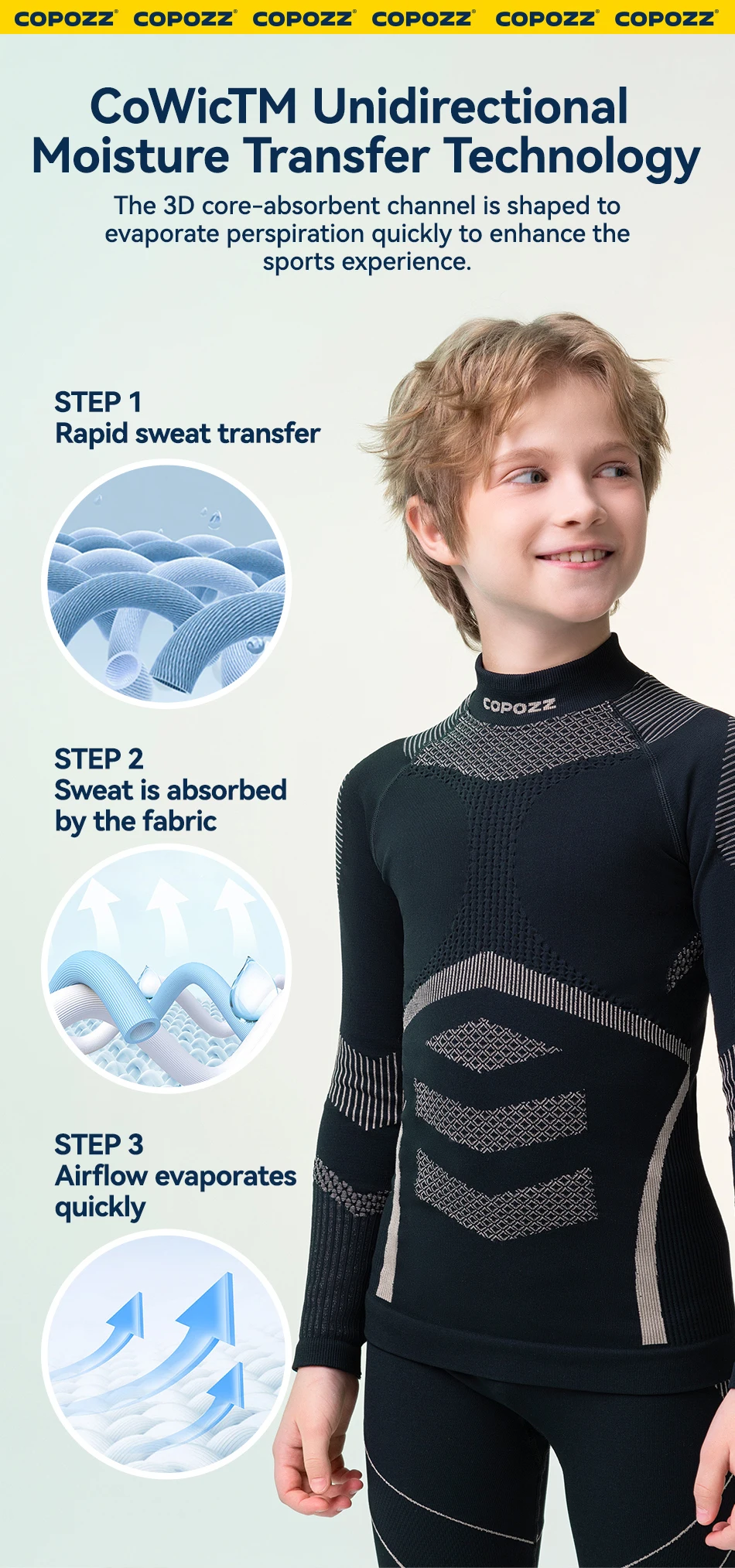 Boz tecnologia de bloqueio de temperatura sem costura esqui roupa interior térmica ternos crianças exercício de secagem rápida agasalho esportes de inverno meninas meninos