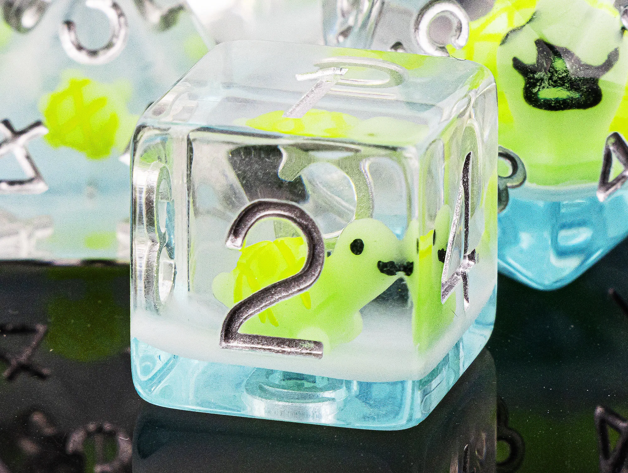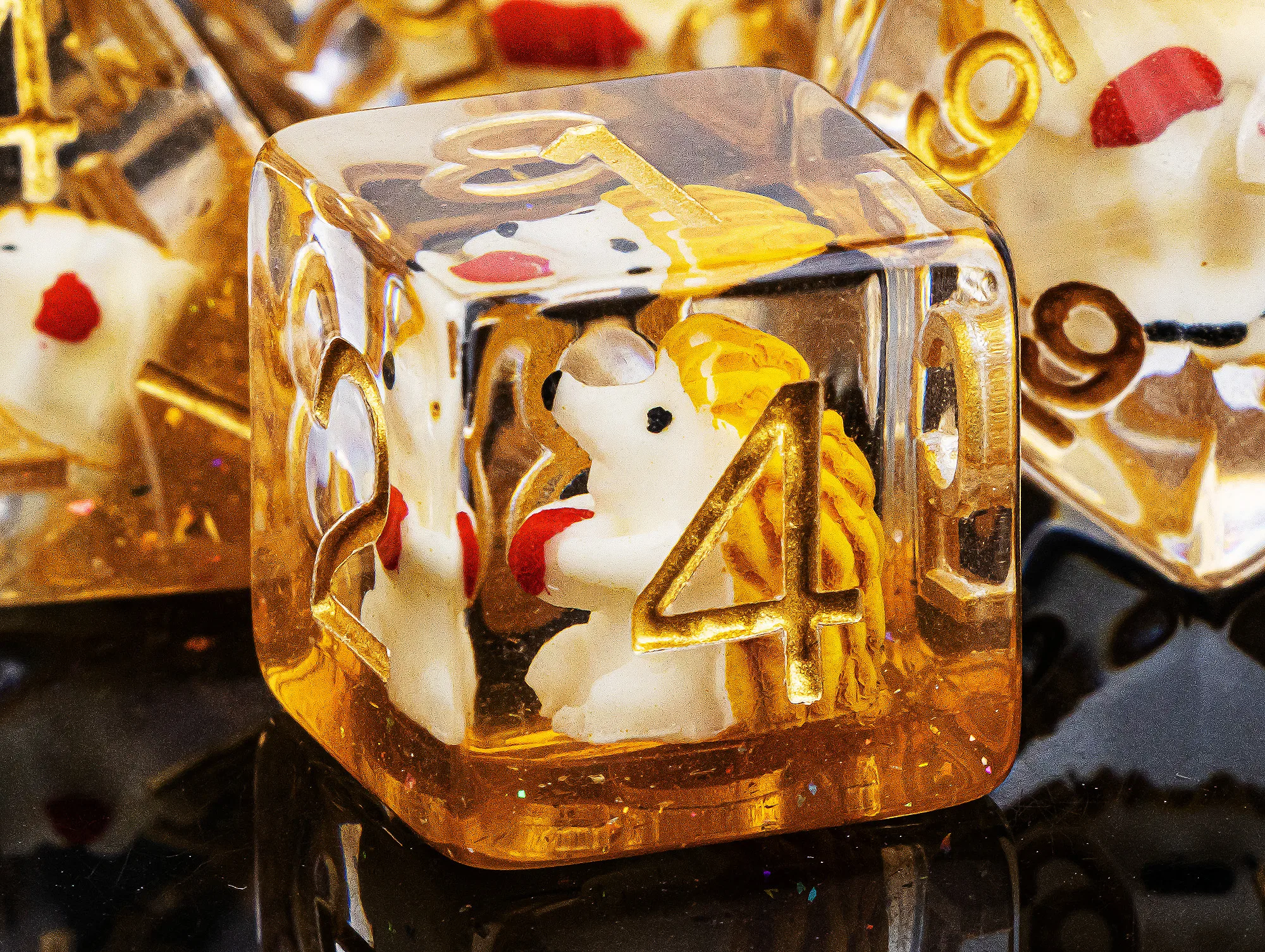 D20, D12, D10(00-90 e 0-9), D8, D6 e D4.